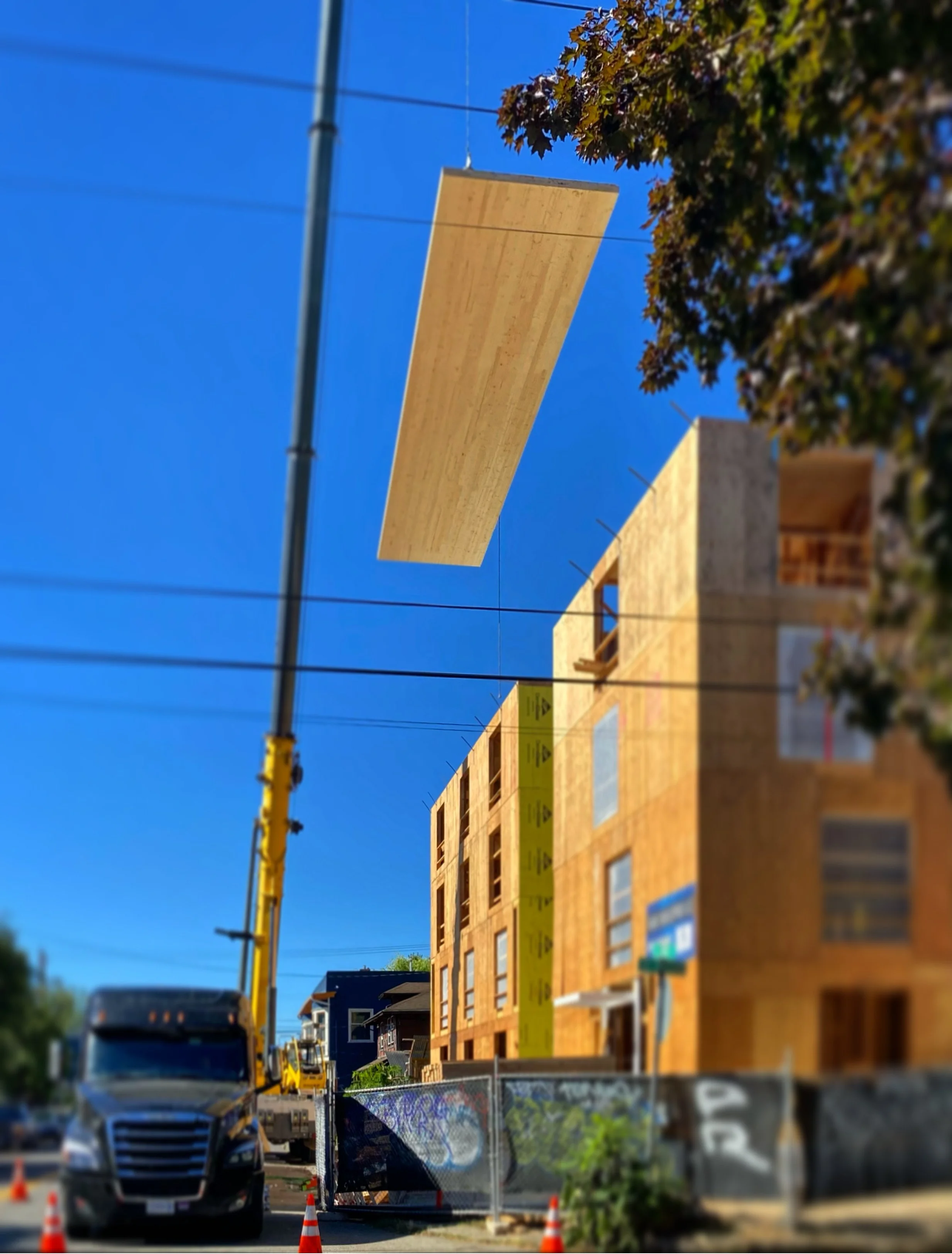 New construction of 35 units of multi-family affordable housing in Southeast Portland utilizing Mass Timber in the form of CLT floor and roof panels